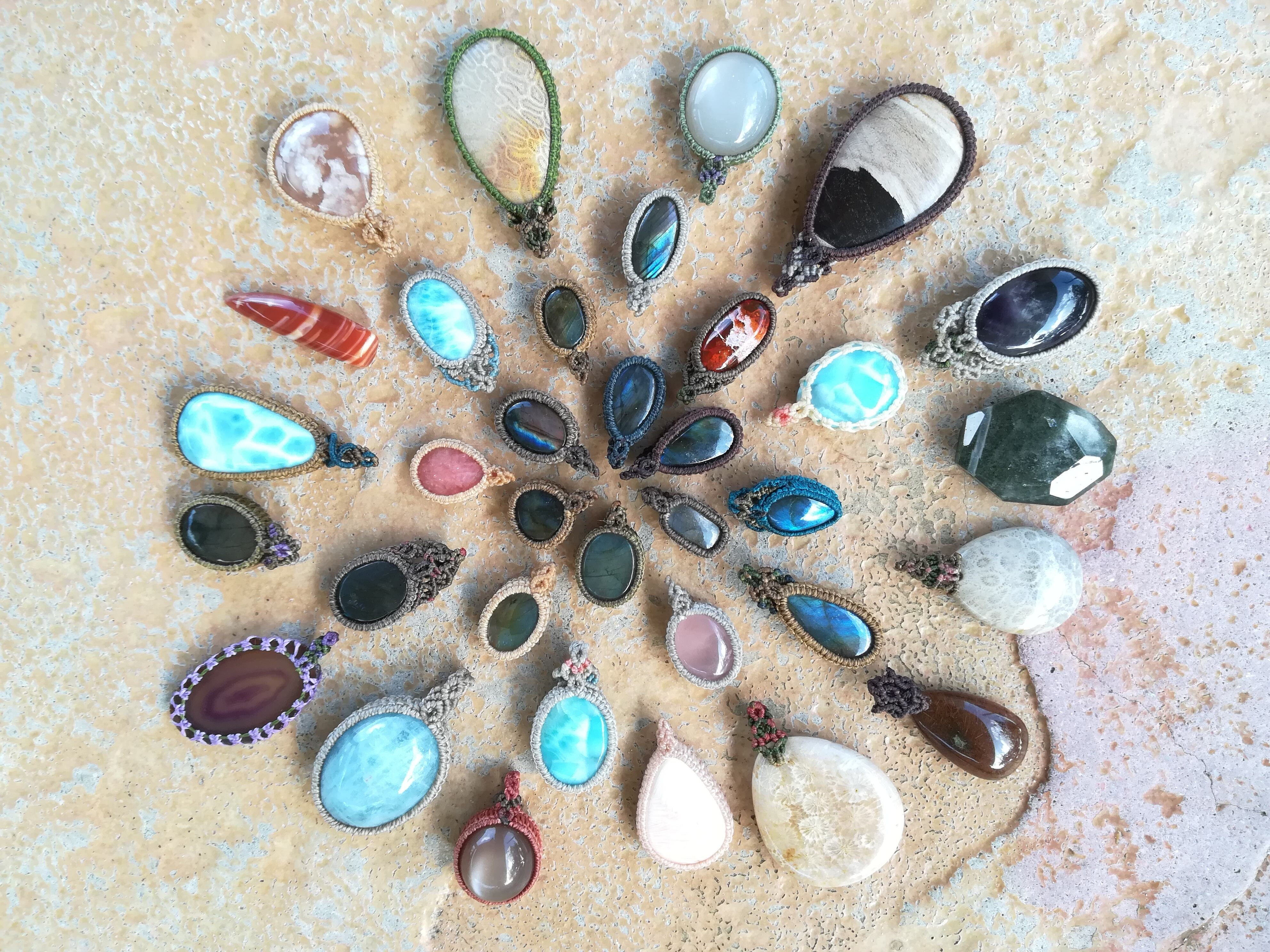 太陽の光に照らされキラキラの天然石。身に着けると、ひなたぼっこしているような暖かい気持ちになってほしいな、と想いを込めています。