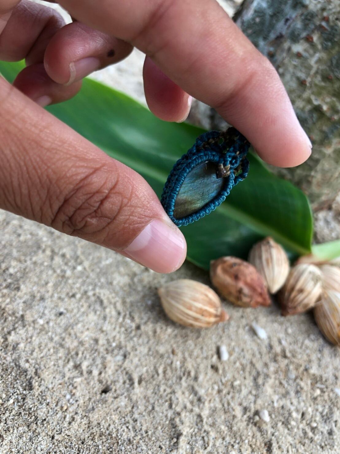 太陽の光に照らされキラキラの天然石。身に着けると、ひなたぼっこしているような暖かい気持ちになってほしいな、と想いを込めています。