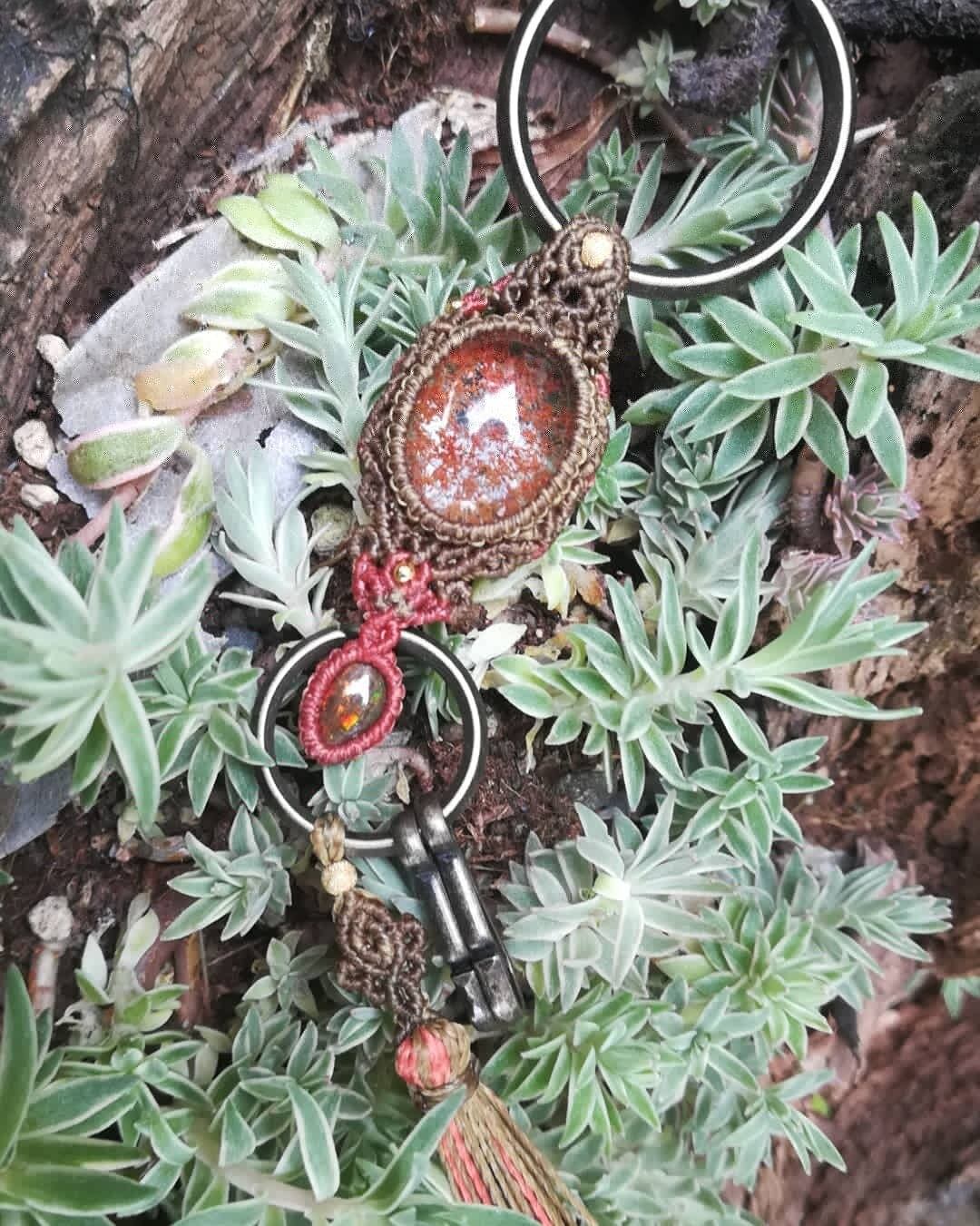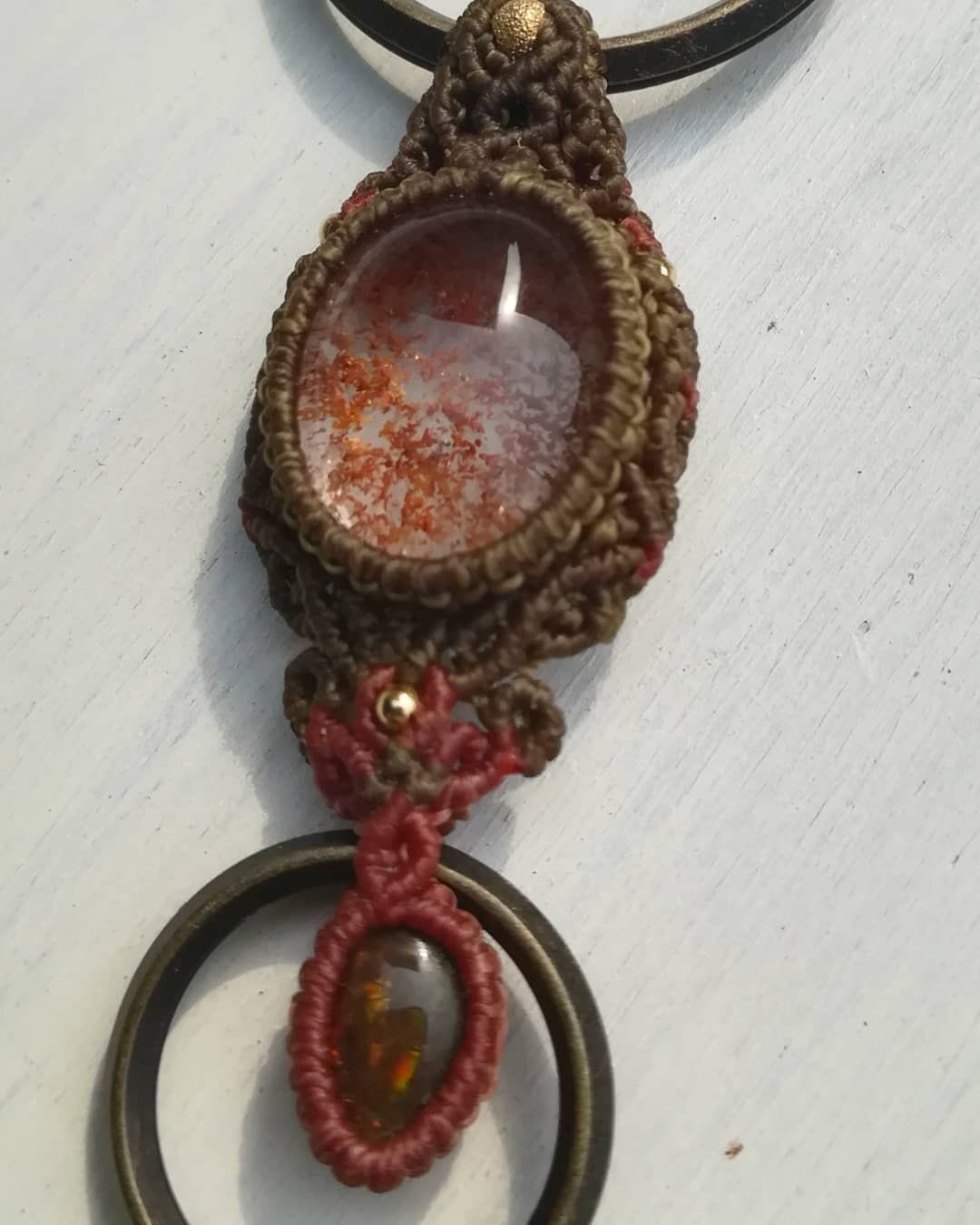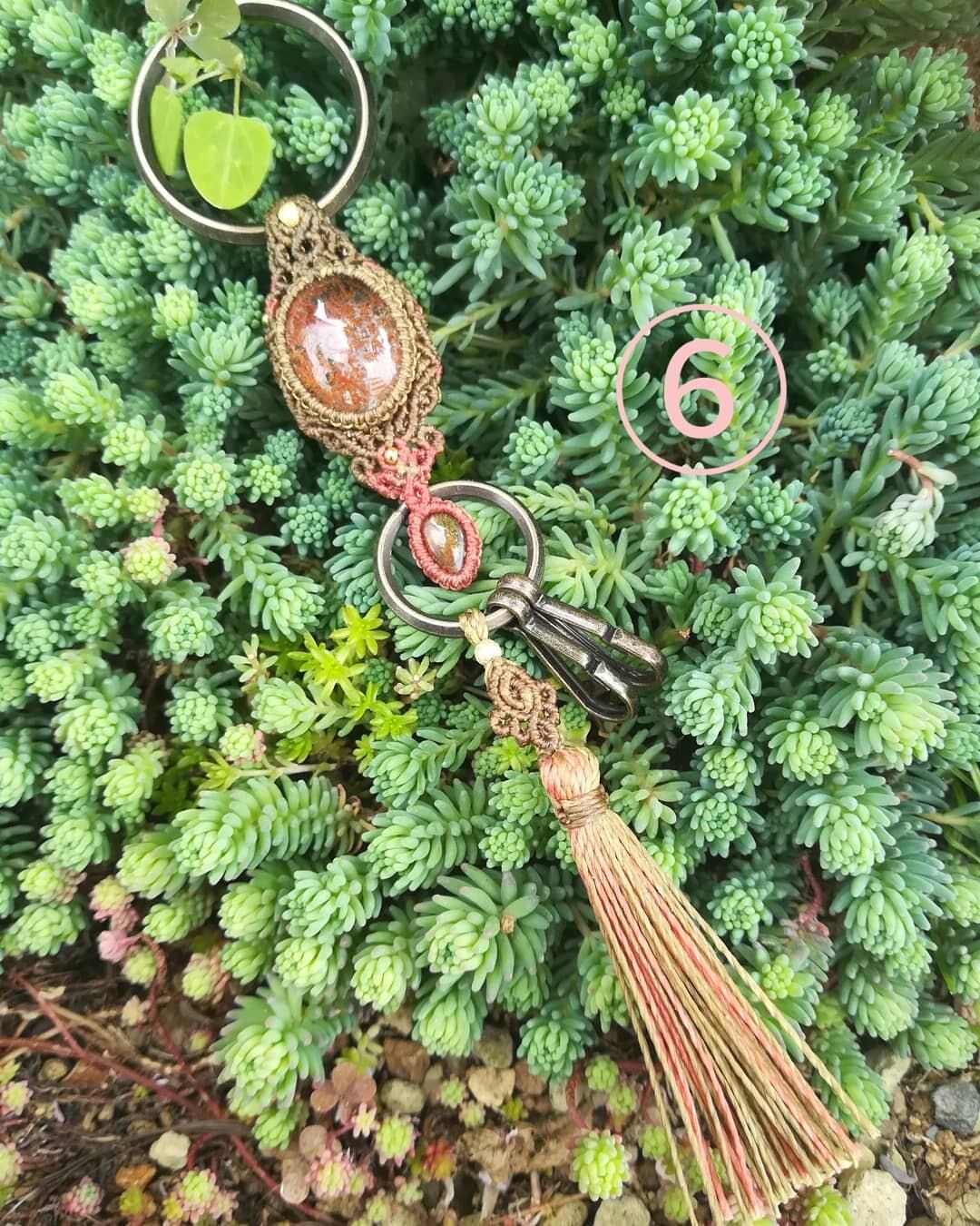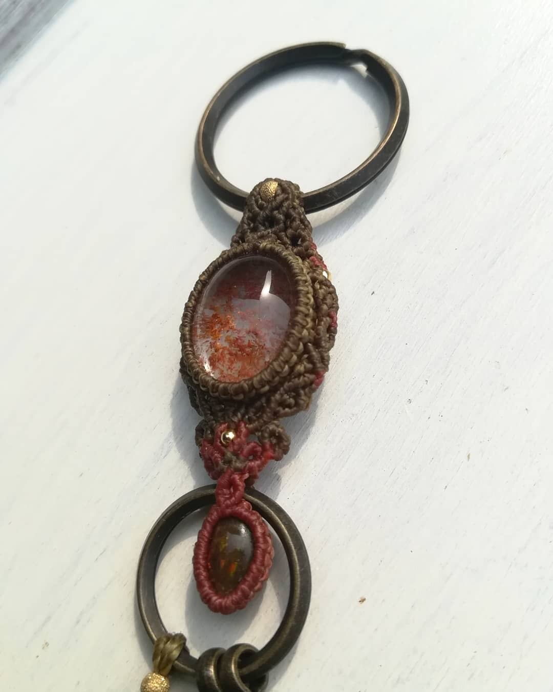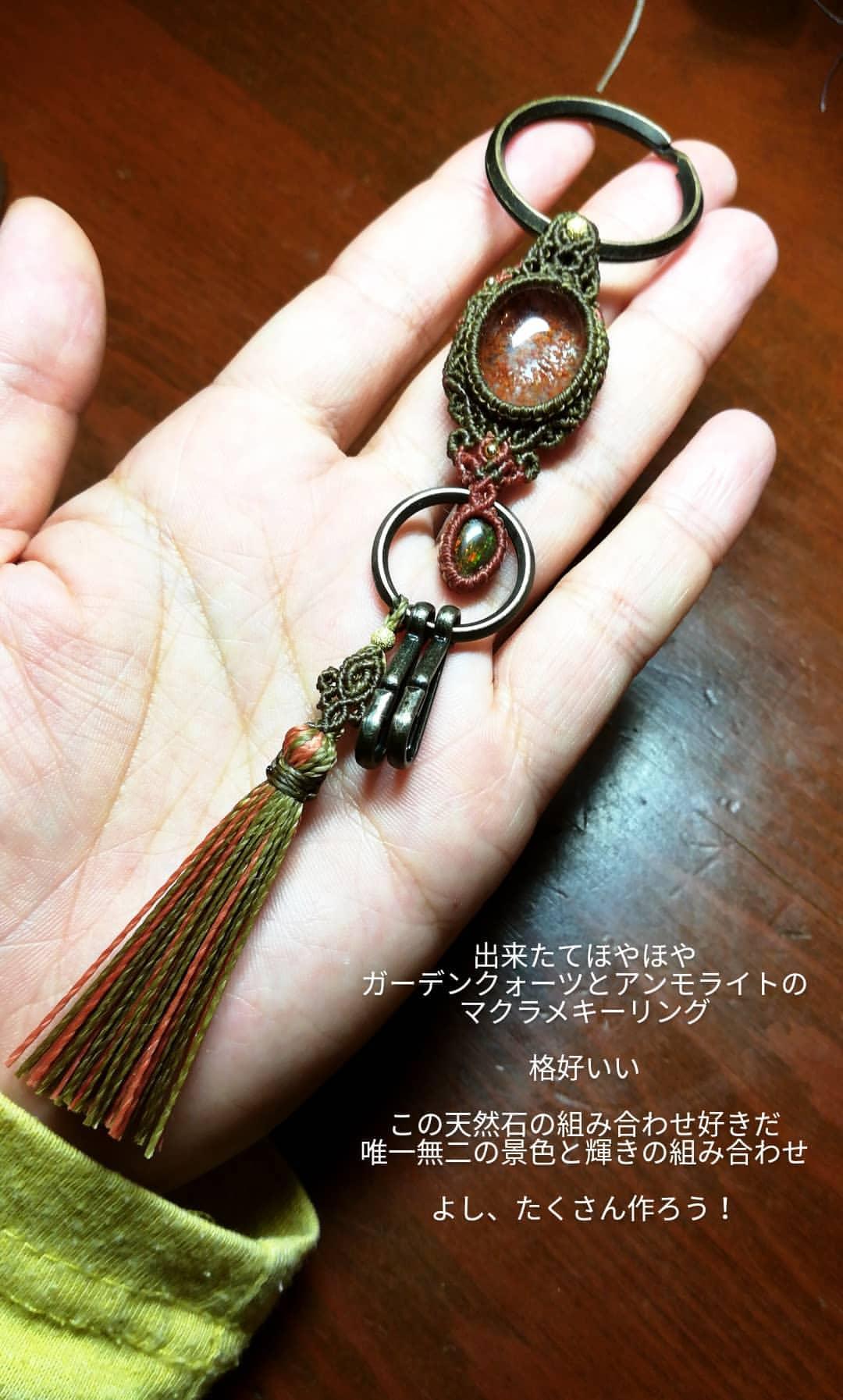 ガーデンクォーツのマクラメキーリングです。