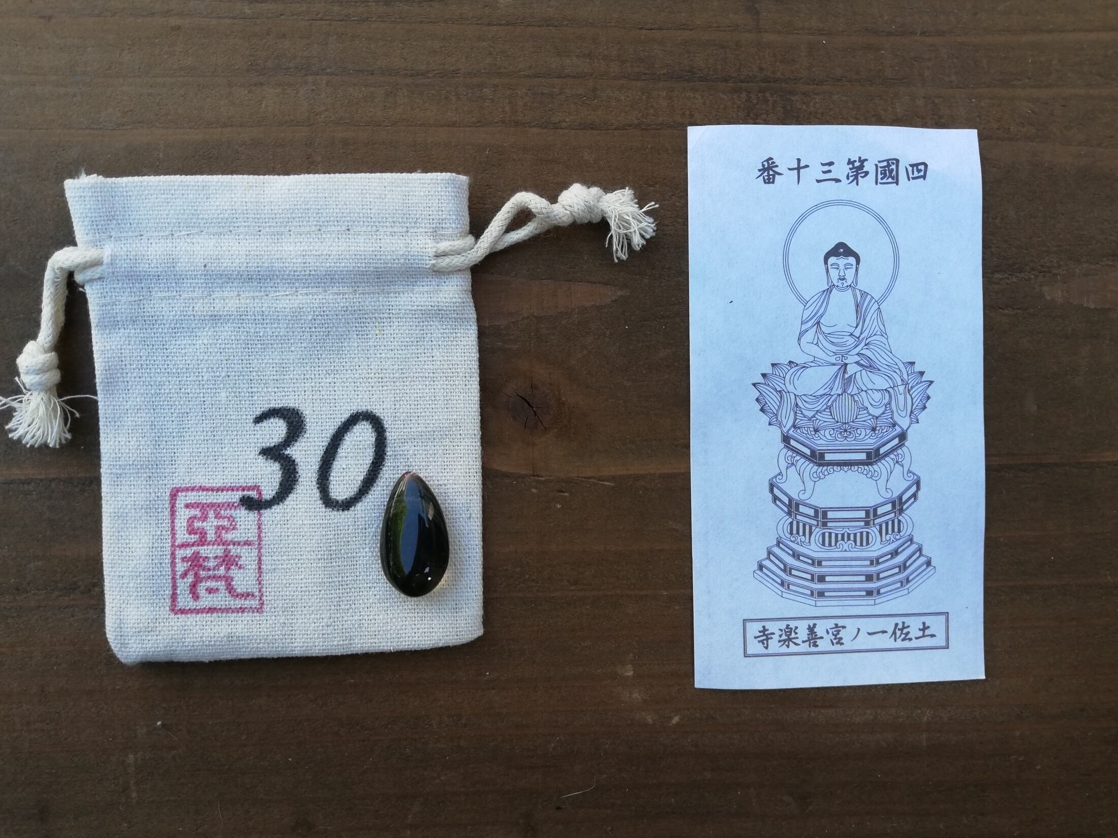 ガーデンクオーツのマクラメ、札所で戴く御影、マクラメを入れる専用の番号の袋、の3点セットです。