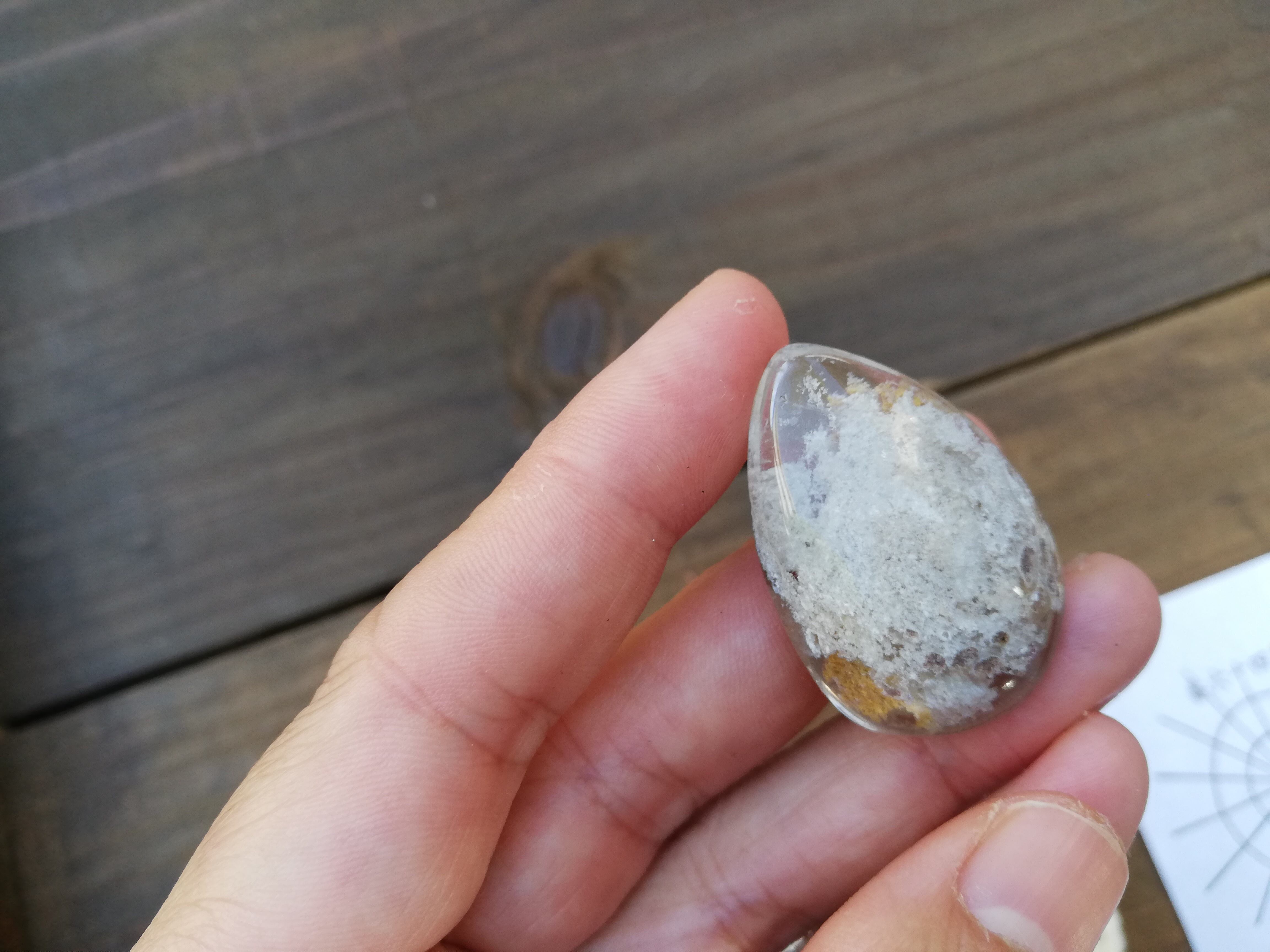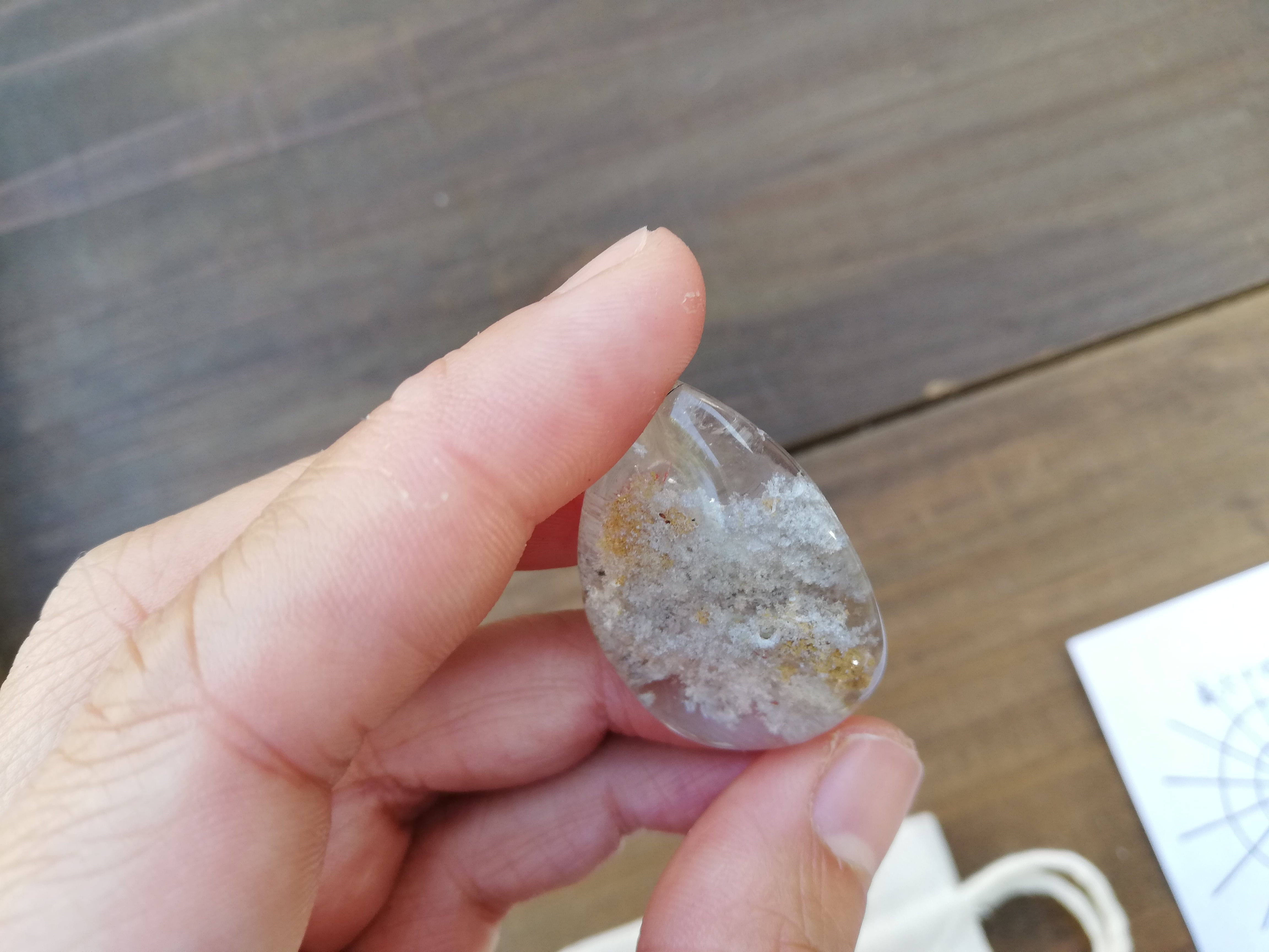 ガーデンクオーツは一つ一つ異なる世界観を持ち、水晶の中に広がる景色とエネルギーの間にとても深い関わりのある石です。 総じて地に足を着ける事を教えるグラウディングの力が強い石です。遍路中、毎日歩くことによってよりグラウディングのエネルギーが増すのかなあと思います。