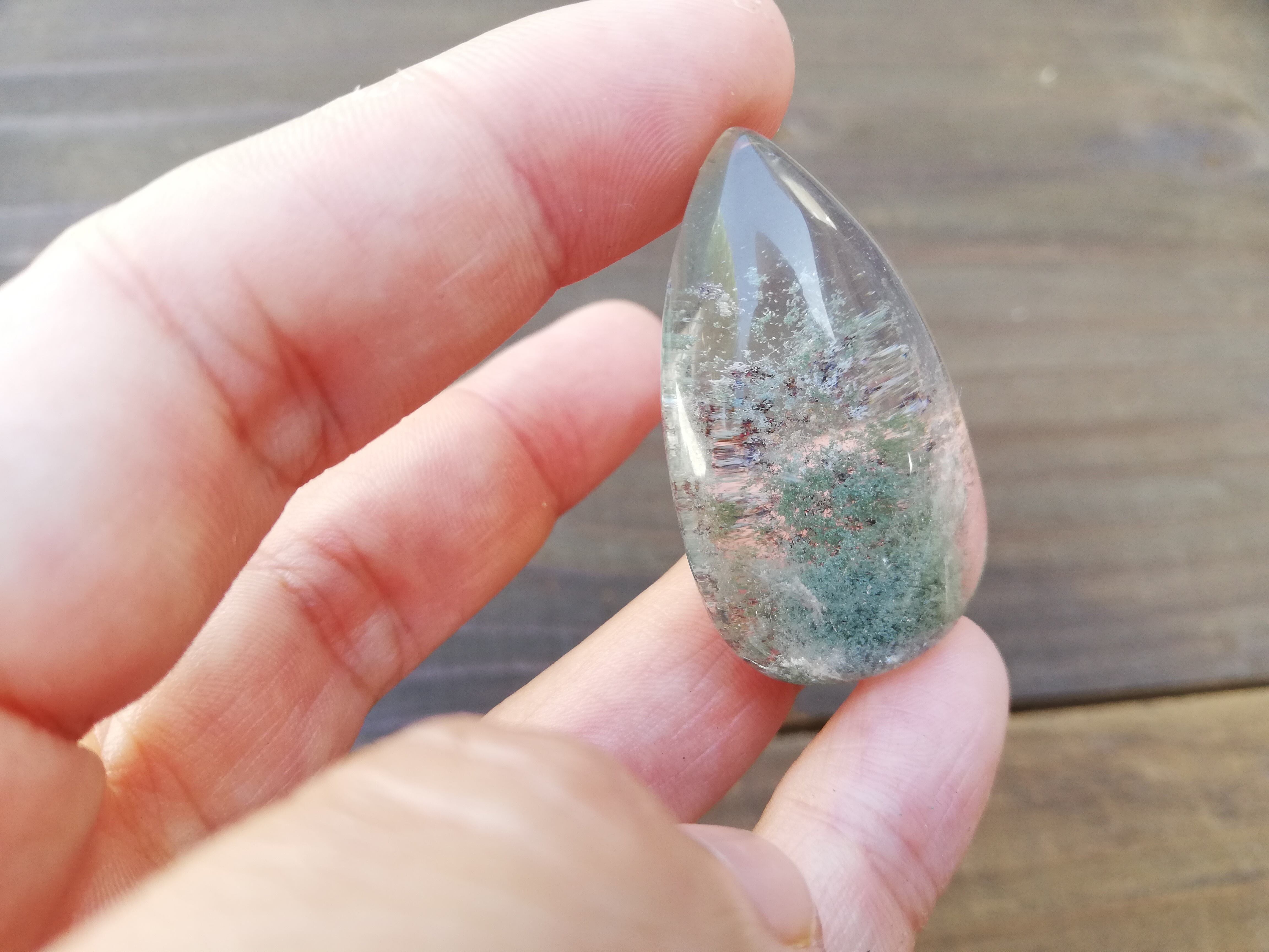 ガーデンクオーツは一つ一つ異なる世界観を持ち、水晶の中に広がる景色とエネルギーの間にとても深い関わりのある石です。 総じて地に足を着ける事を教えるグラウディングの力が強い石です。遍路中、毎日歩くことによってよりグラウディングのエネルギーが増すのかなあと思います。