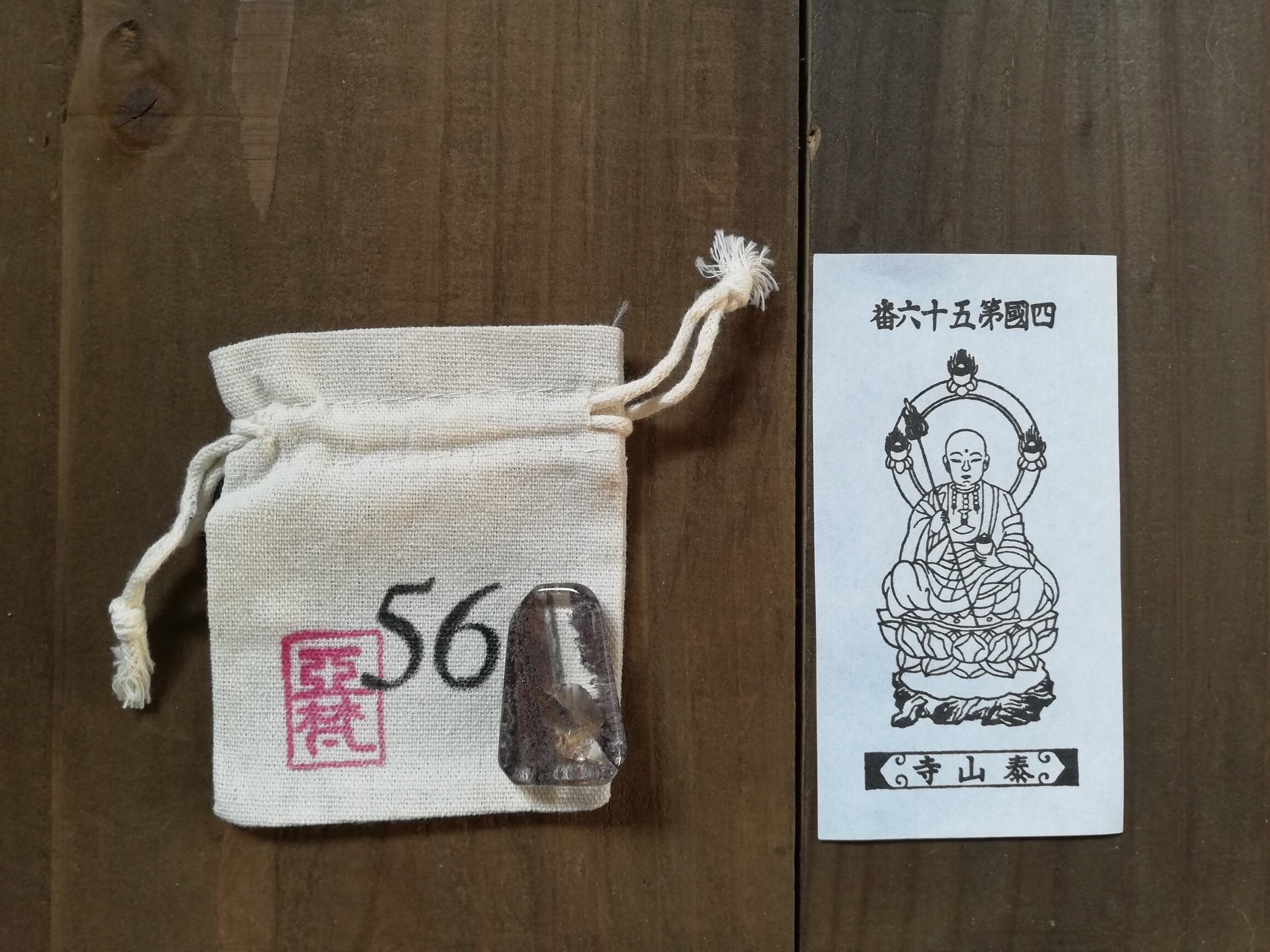 ガーデンクオーツのマクラメ、札所で戴く御影、マクラメを入れる専用の番号の袋、の3点セットです。