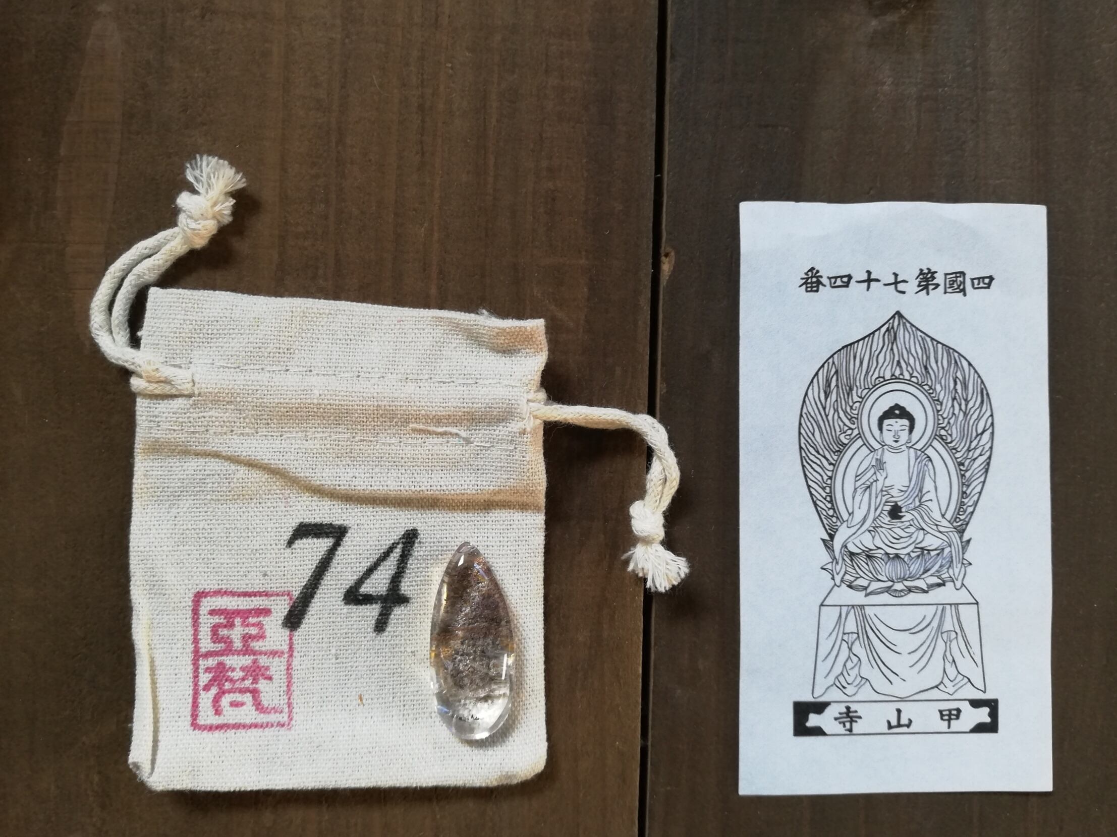 ガーデンクオーツのマクラメ、札所で戴く御影、マクラメを入れる専用の番号の袋、の3点セットです。